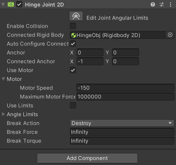 3. Use Motor: 모터를 사용할지 여부를 설정합니다. 모터를 사용하면 조인트가 특정 속도로 회전하게 할 수 있습니다.