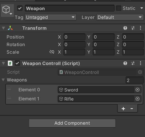 먼저 무기를 바꾸기 위해 WeaponControll을 만들었습니다.