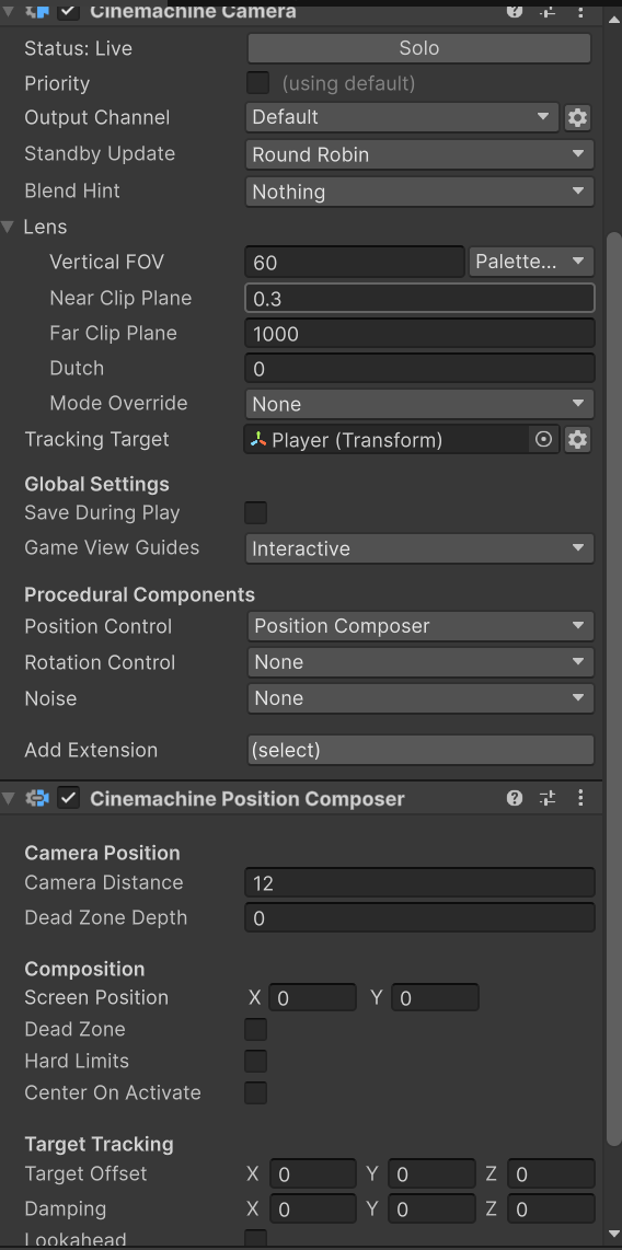 그 다음으로 Follow Cam을 만든 뒤, 설정했습니다.