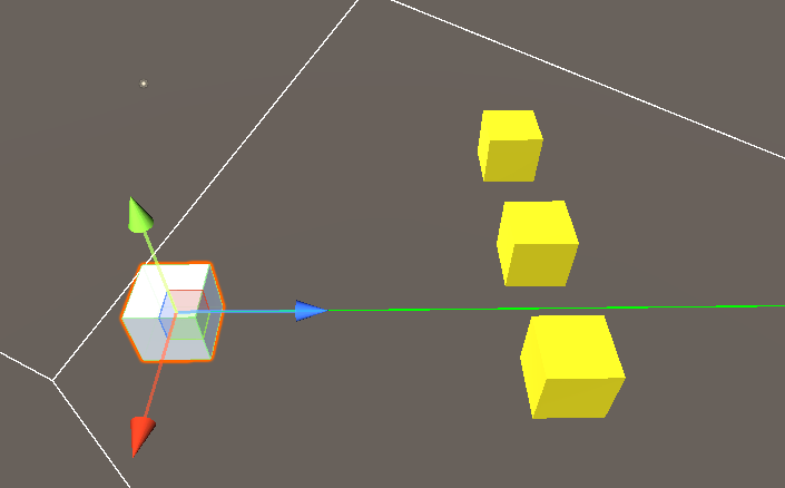 Ray를 총 3가지로 쏩니다. 앞에 물체가 없다면 길이만큼 선으로 레이를 쏩니다.