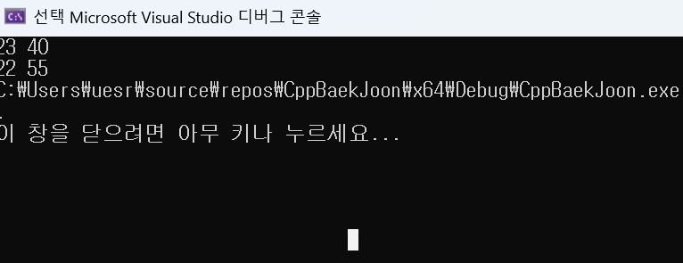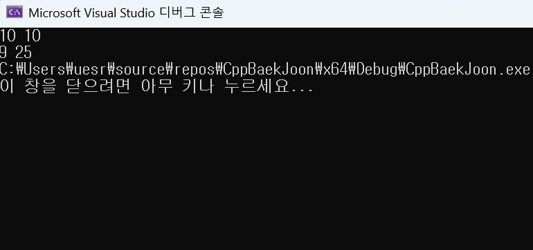 cout << a << " " << b;