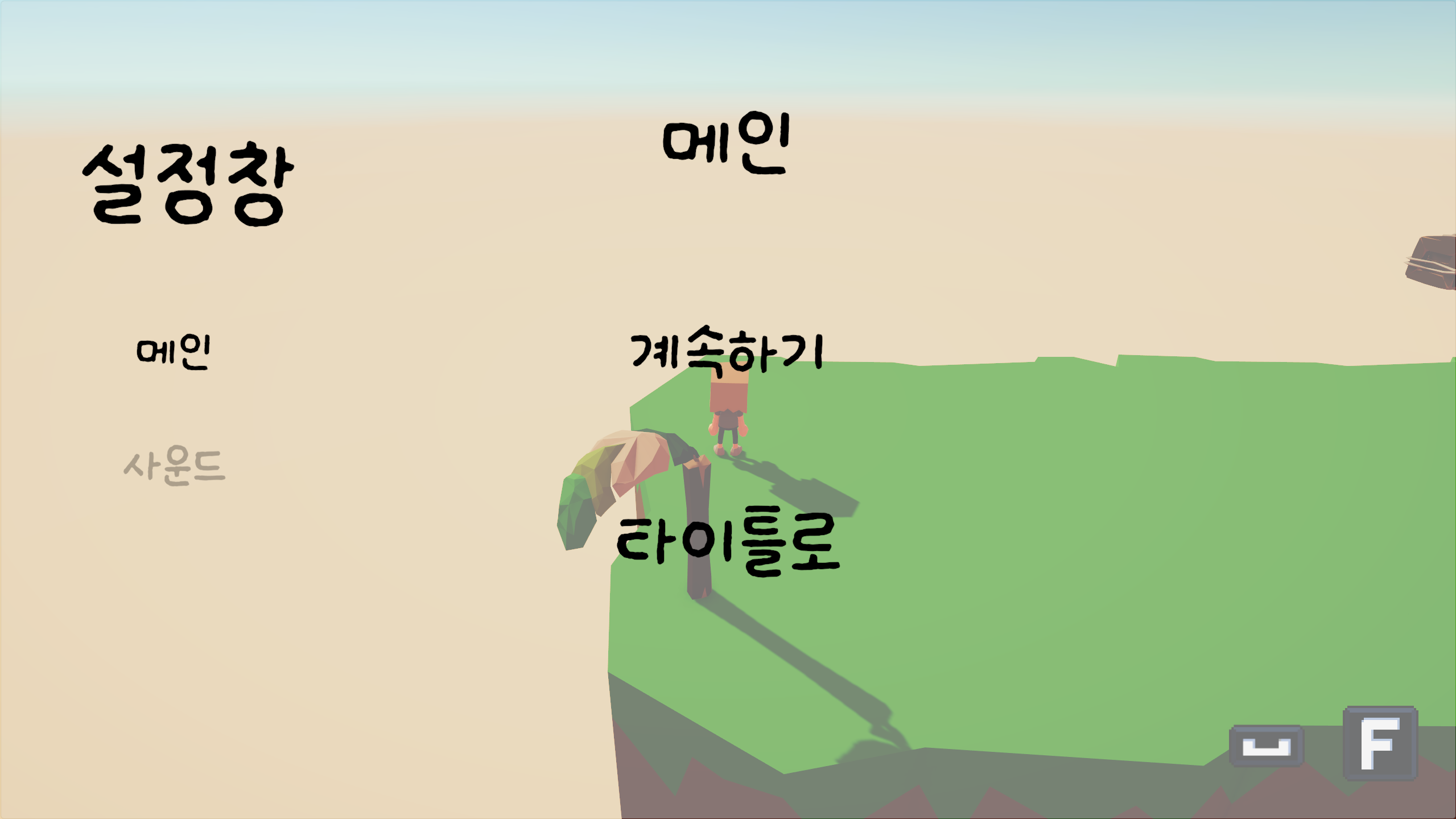 | 조작 방식 | 이동 : W,A,S,D 점프 : 스페이스 바 뷰 전환 기믹 : F 블럭 밀기 : E 다리 생성 : R 설정창 : Esc |