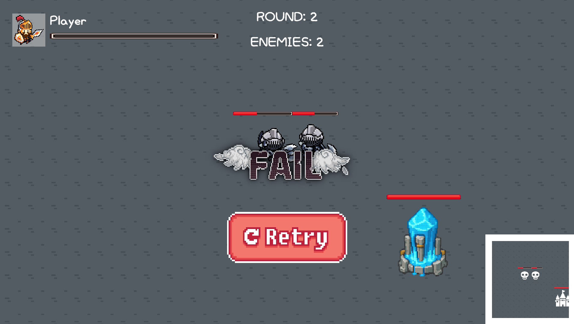최대 라운드(15)에 도착하면 클리어 하며, 만약 그 전에 플레이어가 죽거나 넥서스가 파괴되면 게임은 종료됩니다.
