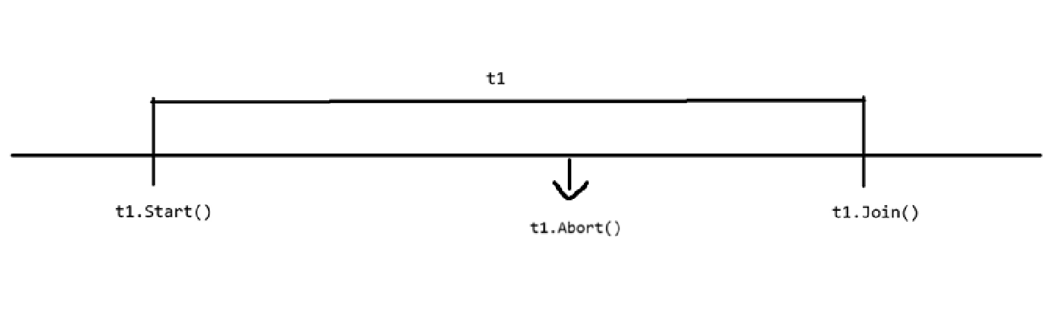 t1.Abort에서 Abort 메서드를 실행하여 스레드 정지를 시도합니다.