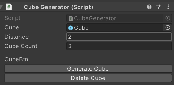 이 코드를 실행하기 위해 CubeGenerateButton이라는 스크립트를 만들었습니다.